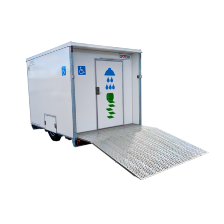 Godiks mobile handikaptoaletter har en nedsenkbar aksel, som gjør at den kan senkes helt ned til bakken. Rampen som finnes på alle de mobile handikaptoalettene sørger også for at overgangen mellom rampen og toalettet ikke blir for høy. Inngangen til toalettene og minst 0,9 m bred. Det mobile handikaptoalettet er lett å manøvrere rundt, da det er god plass til bl.a. rullestol og hjelper. Alle toalettene har armlener som kan slås opp/ned.