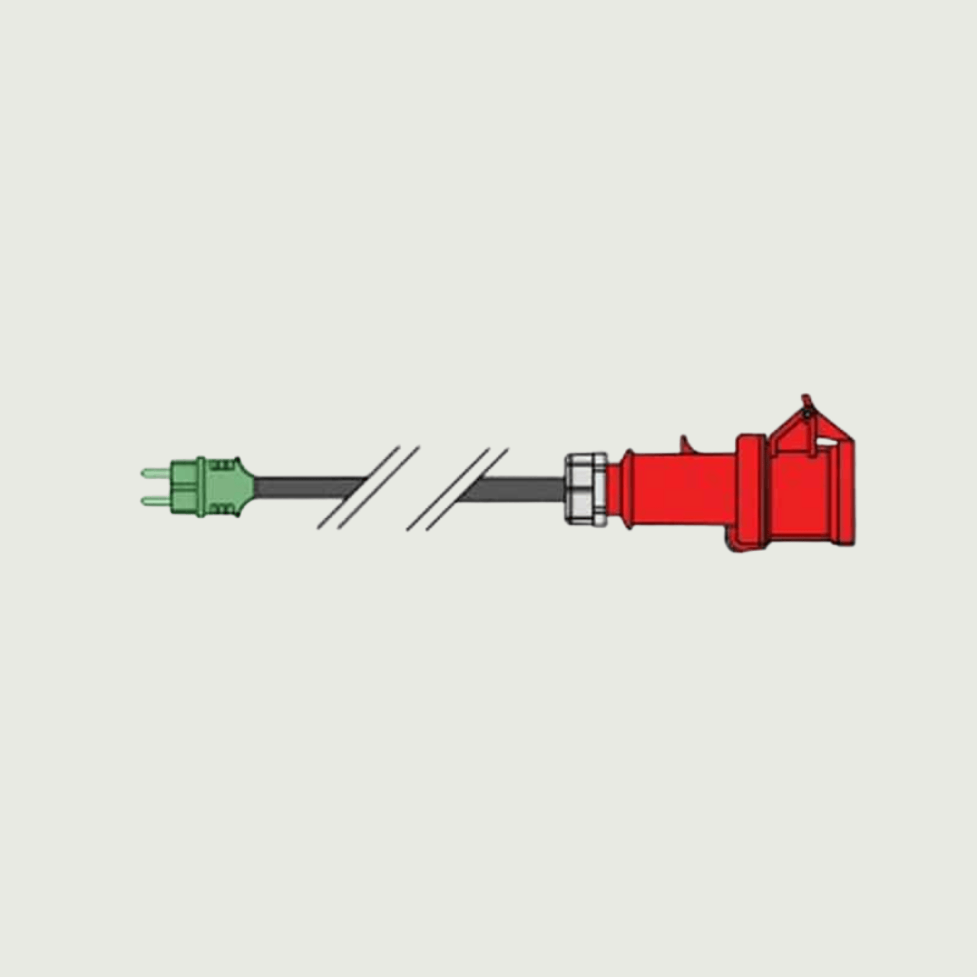 Adapterkabel 1x 16A, 230V DK-han til 3x 16A 400V CEE-stik hun.