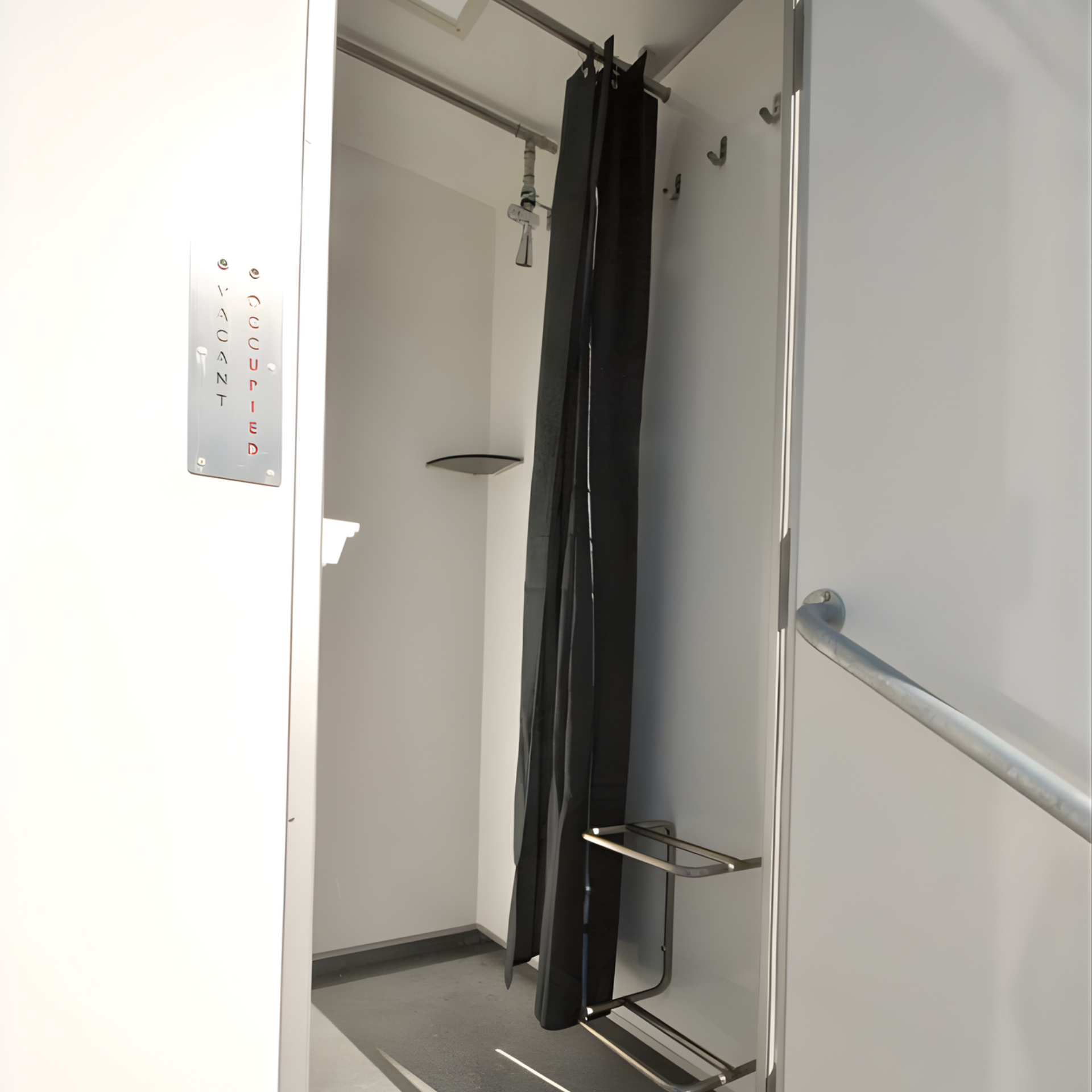 12 enkeltbad, 1 vaskeenhet og inn-/utgangsmølle
