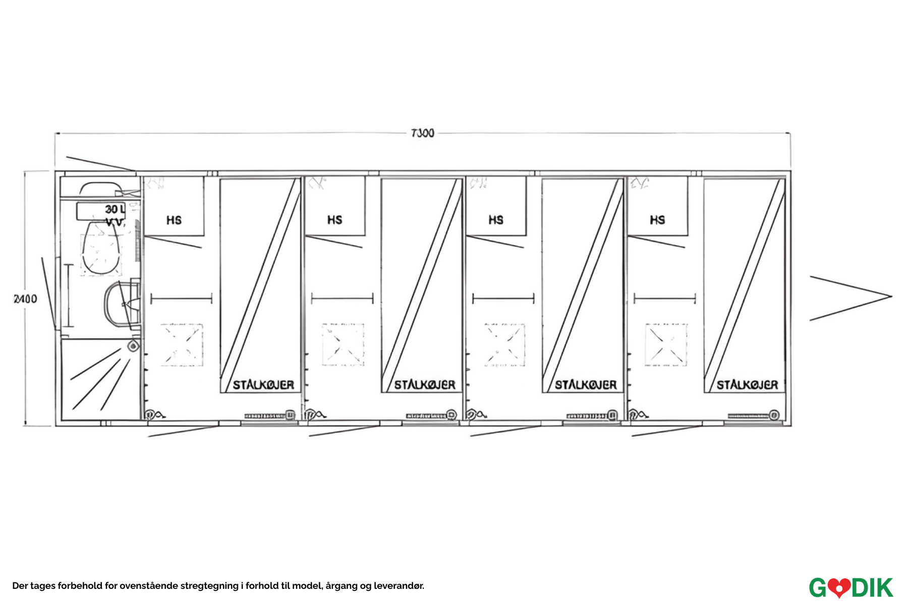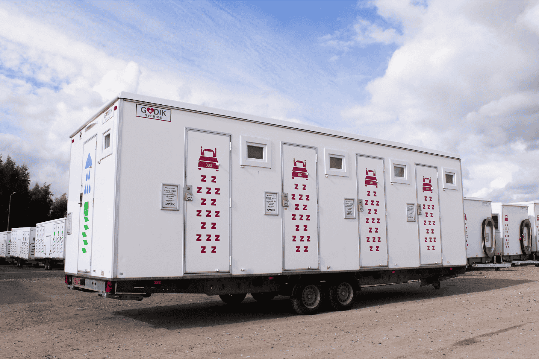 Stor beboelsesvogn med plass til åtte personer. Perfekt for større mannskapsområder. Leveres med bad.