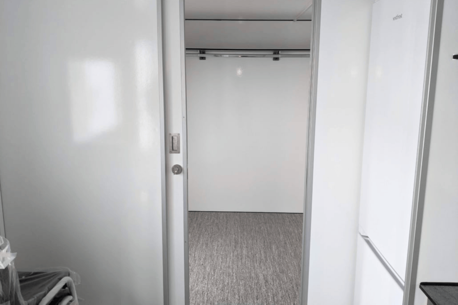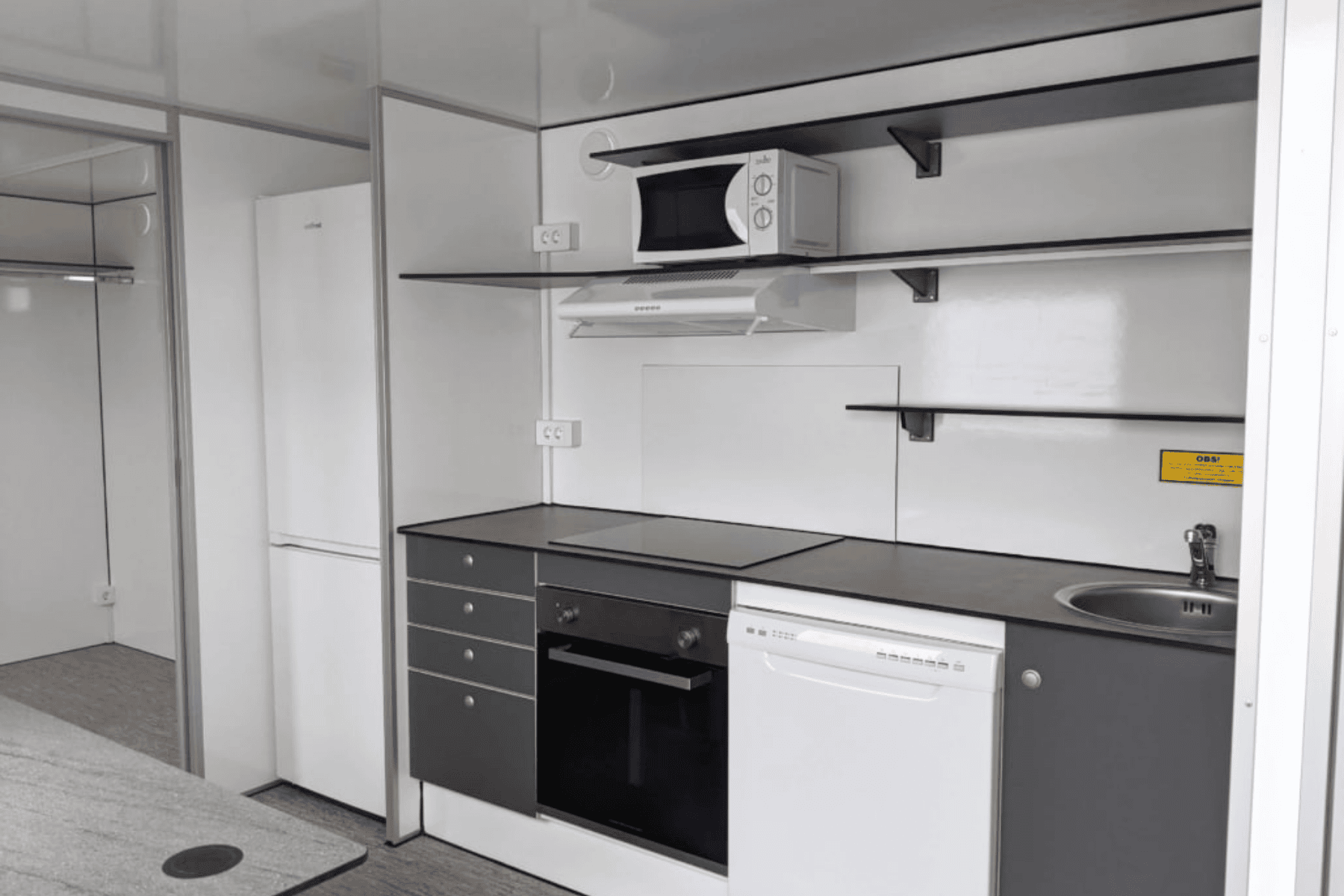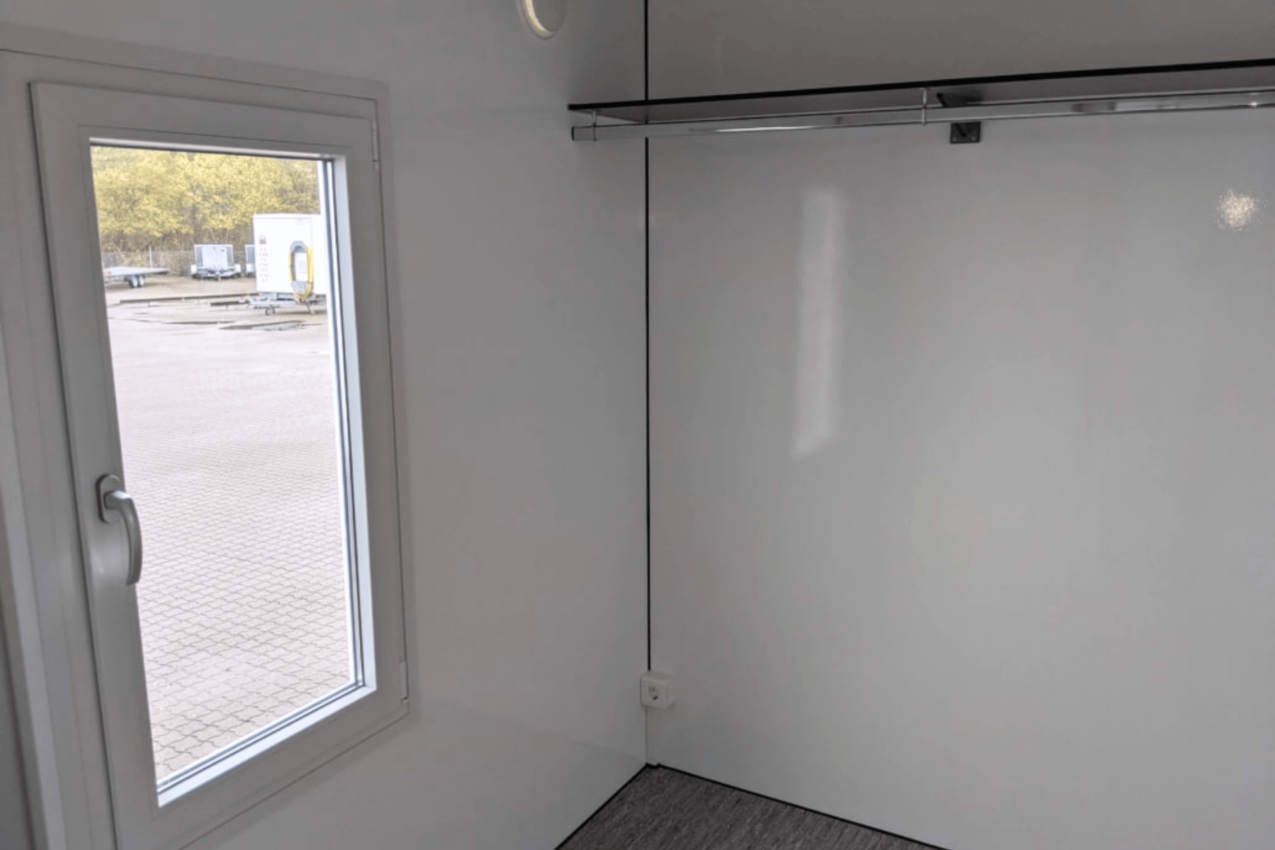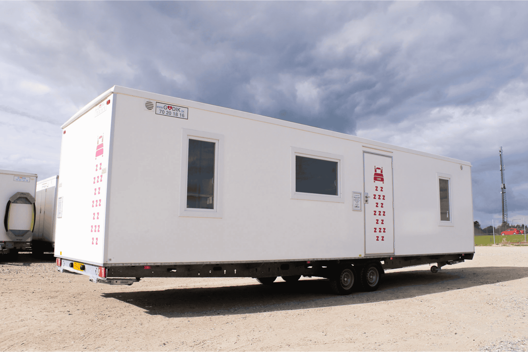 9 meter lang beboelsesvogn med fire senger, stue, bad og kjøkken. Ideell for lengre prosjekter eller arrangementer som krever komfortabel innkvartering.