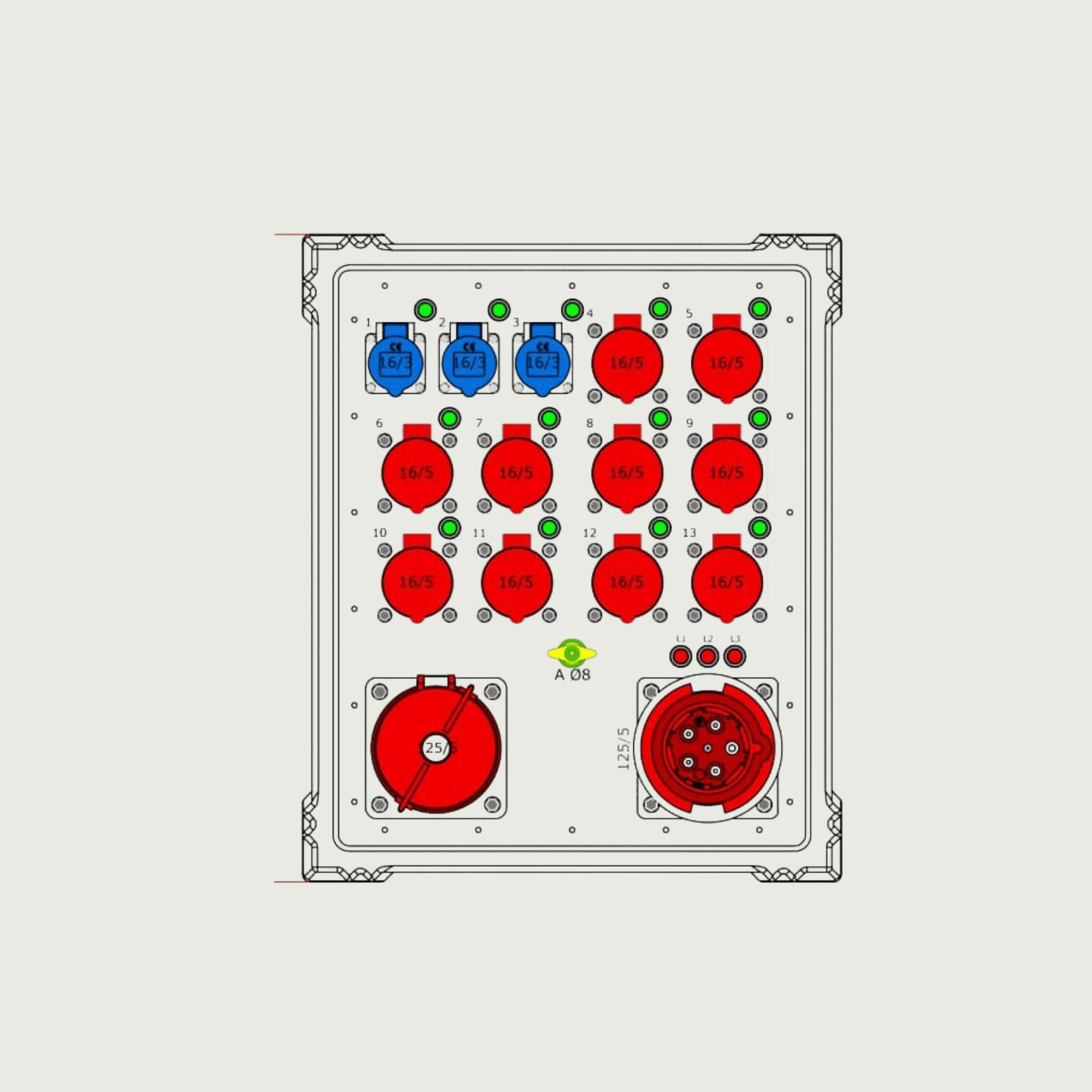 8-bokser, 10 x 16 A 400 V