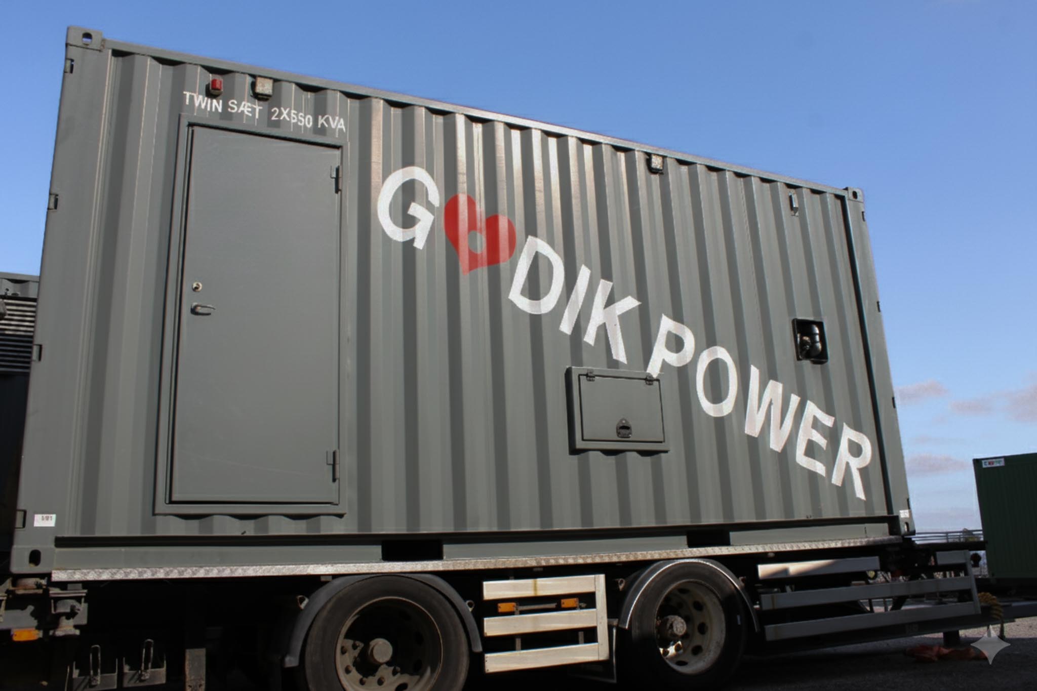 20" container på kærre.Power Management.Fuldautomatisk synkronisering.Kontinuerlig drift op til 80% (kun kortvarig maksimal belastning).Generator er udstyret med GPS sporingsenhed.Dieselforbrug efterfaktureres.