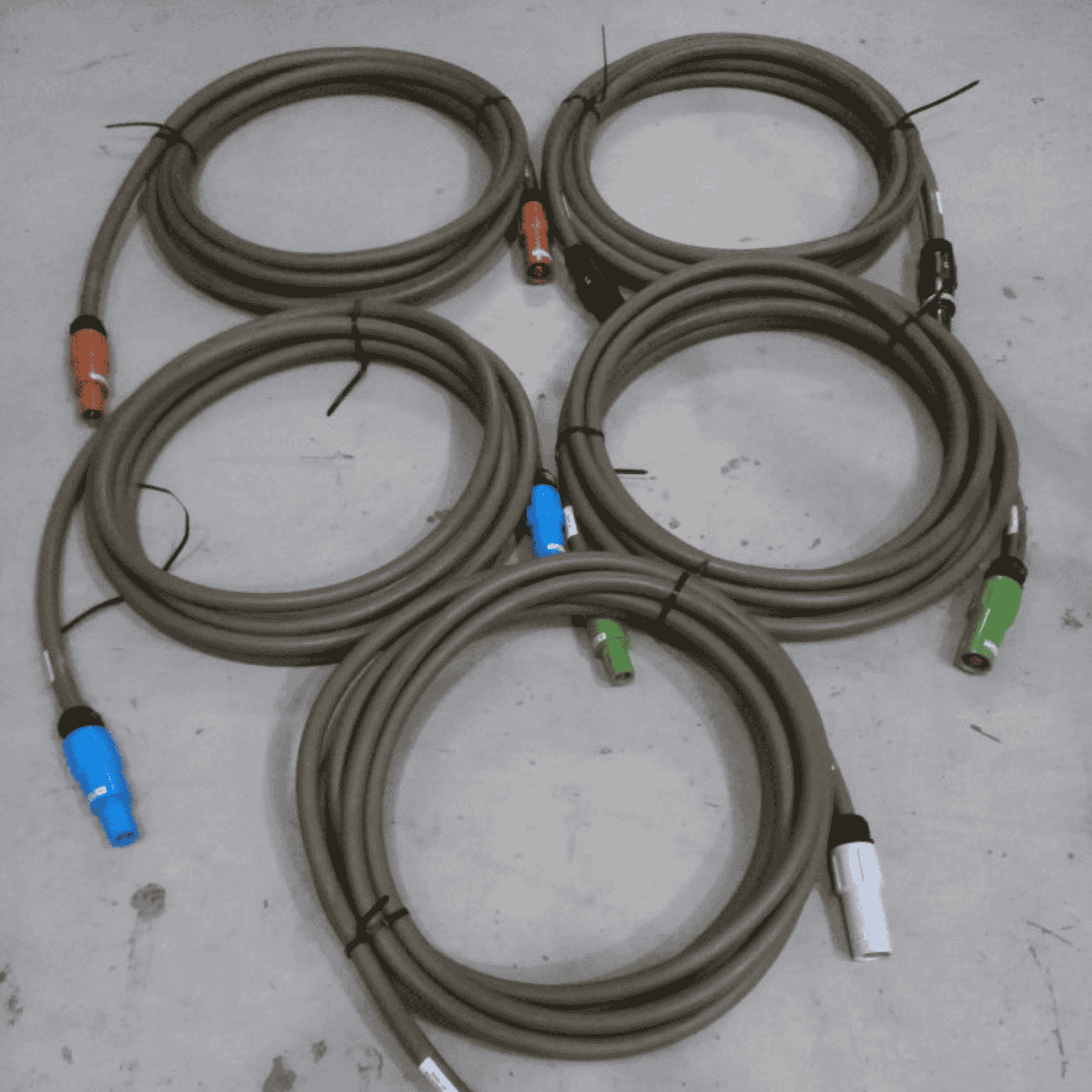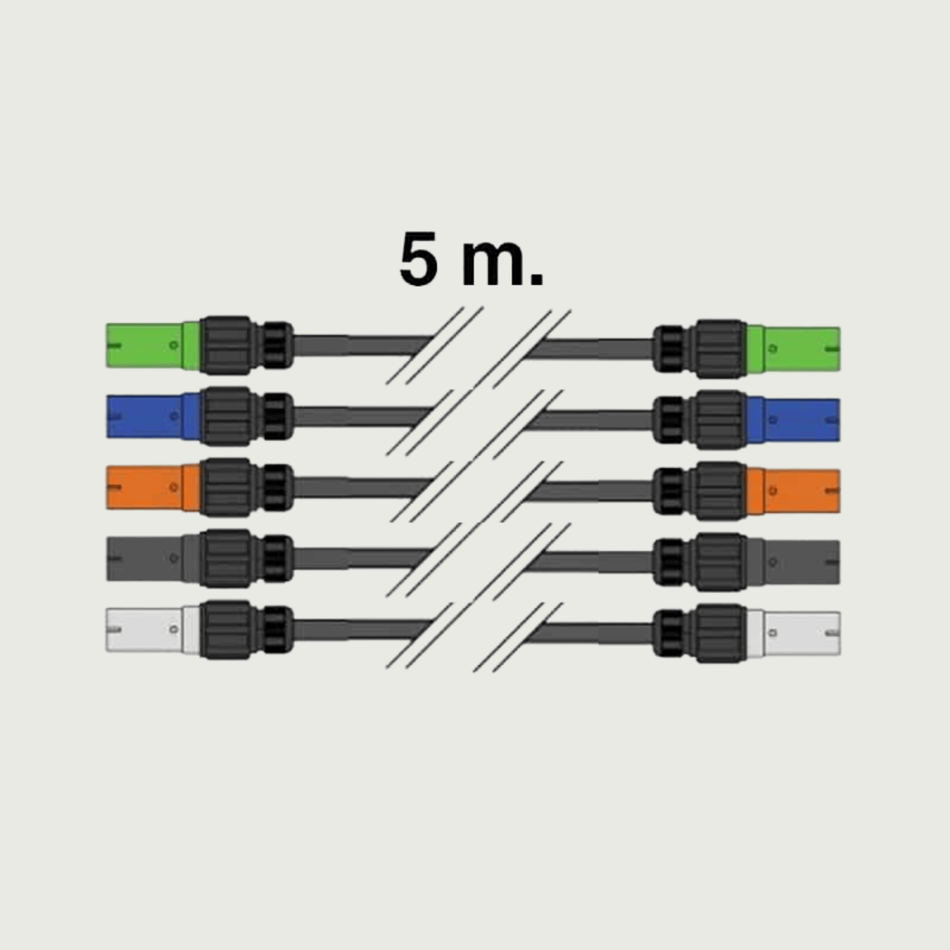 5 meter 400V 120 mm², 5 stk. enkeltleder, PowerLock stik han til hun.