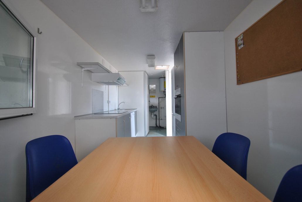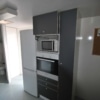 kjøkken: Kjøle/fryseskap, høyskap med stekeovn og mikrobølgeovn, keramisk platetopp, oppvaskmaskin, oppvaskkum, kjøkkenvask, underskap, bord med 4 stoler.