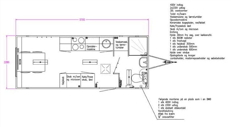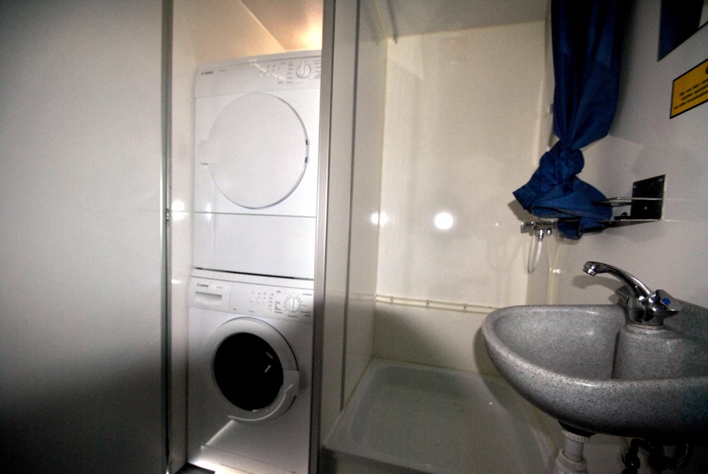 toalettrom: Dusj, varmtvannstank 30 l., toalett m/kvern, vaskemaskin og tørketrommel.