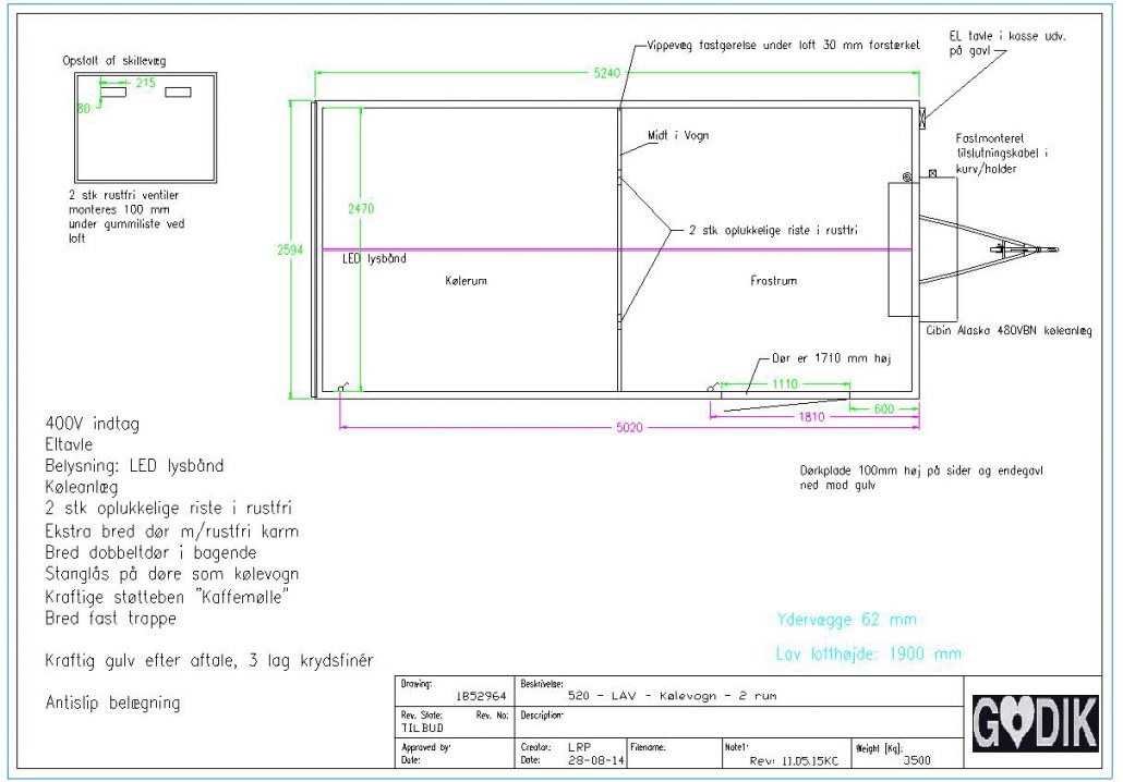 - Innvendige mål: H. 255 B. 247 L. 502 cm.