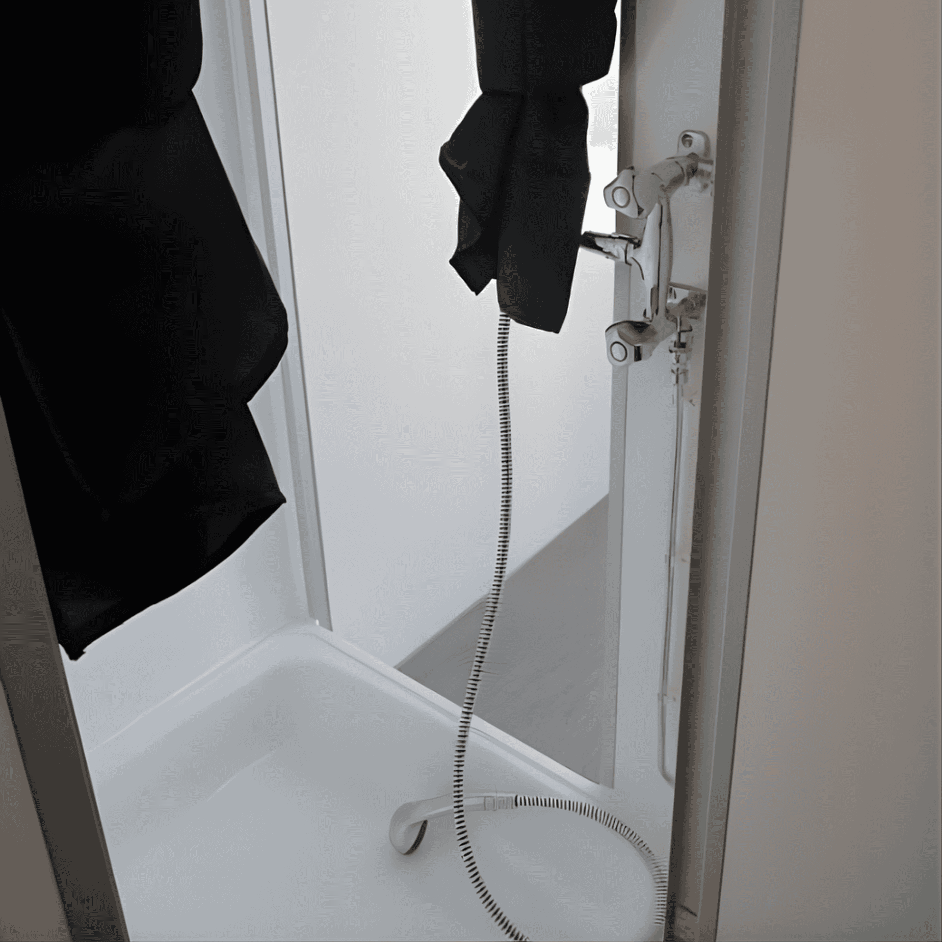 25 meter vannslange, avløpsslange og elektrisk ledning, 1 stige, 1 sveiv.