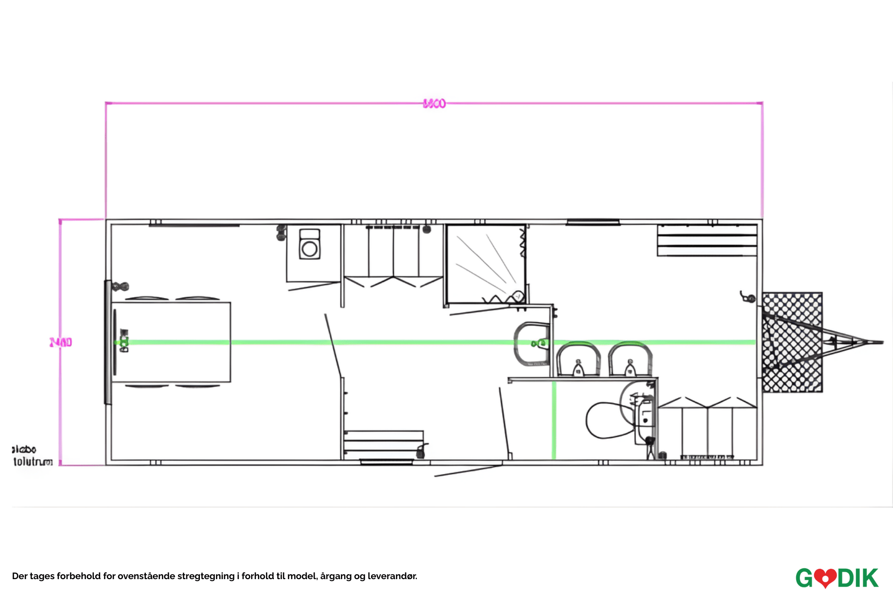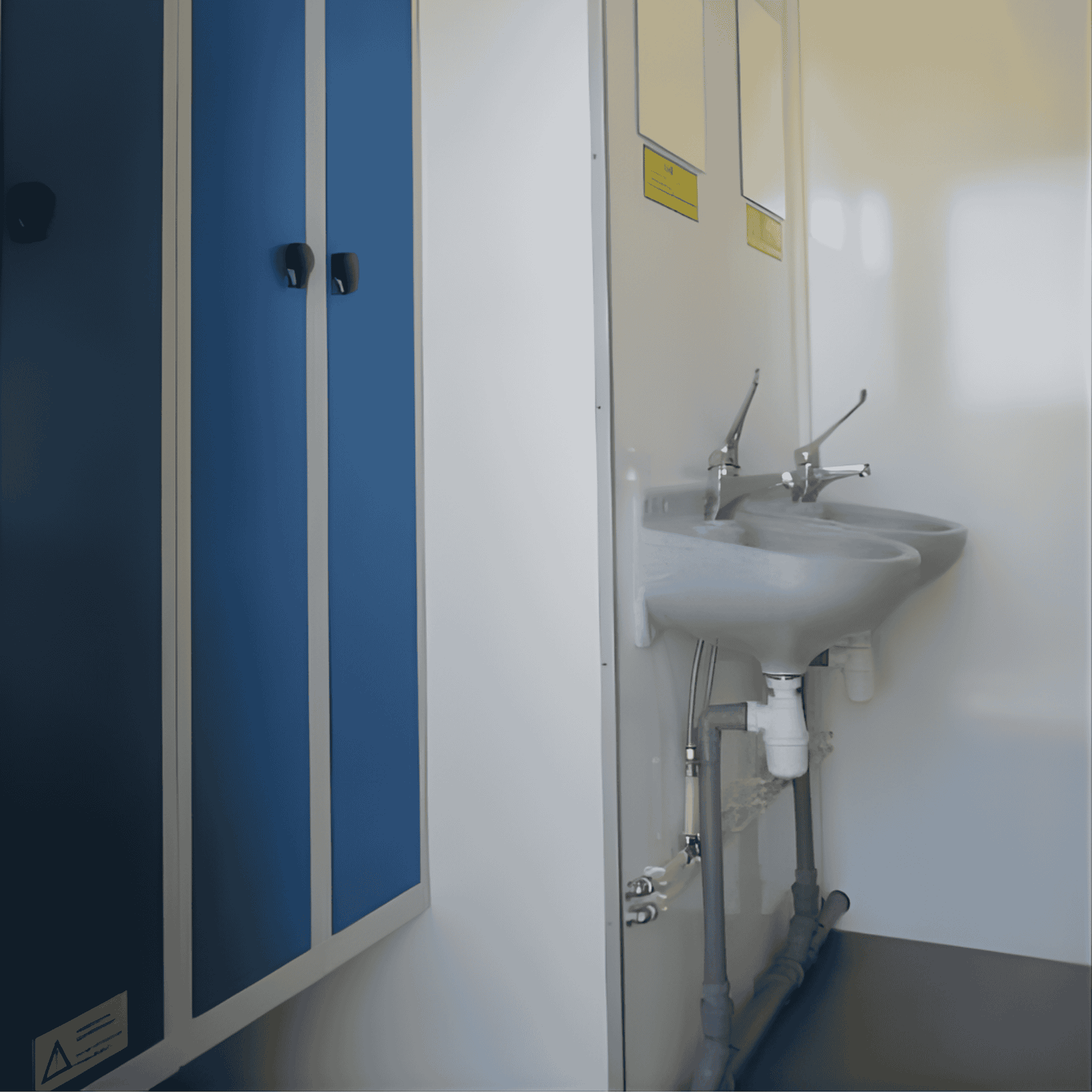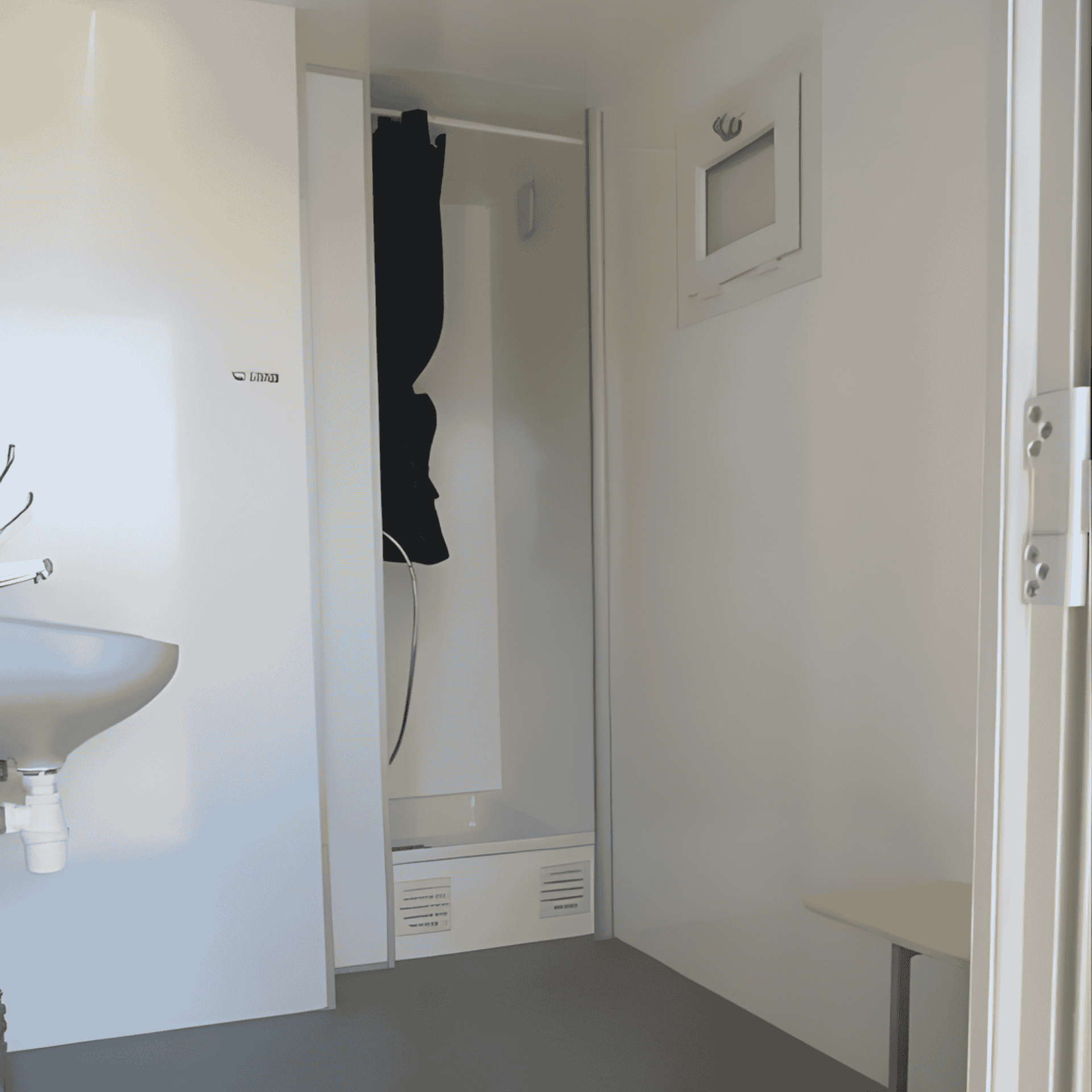 Miljøvognen er delt inn i to soner: en skitten sone og en ren sone, atskilt av dusjkabinettet, noe som sikrer en effektiv og kontrollert overgang mellom arbeidsklær og rene klær.