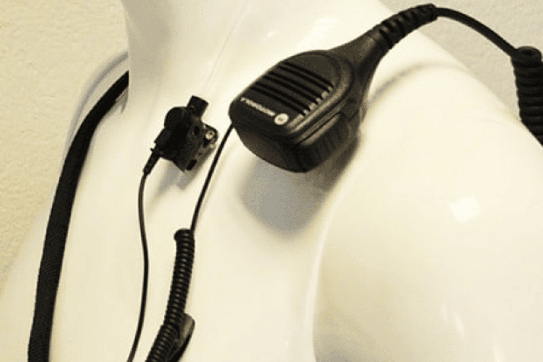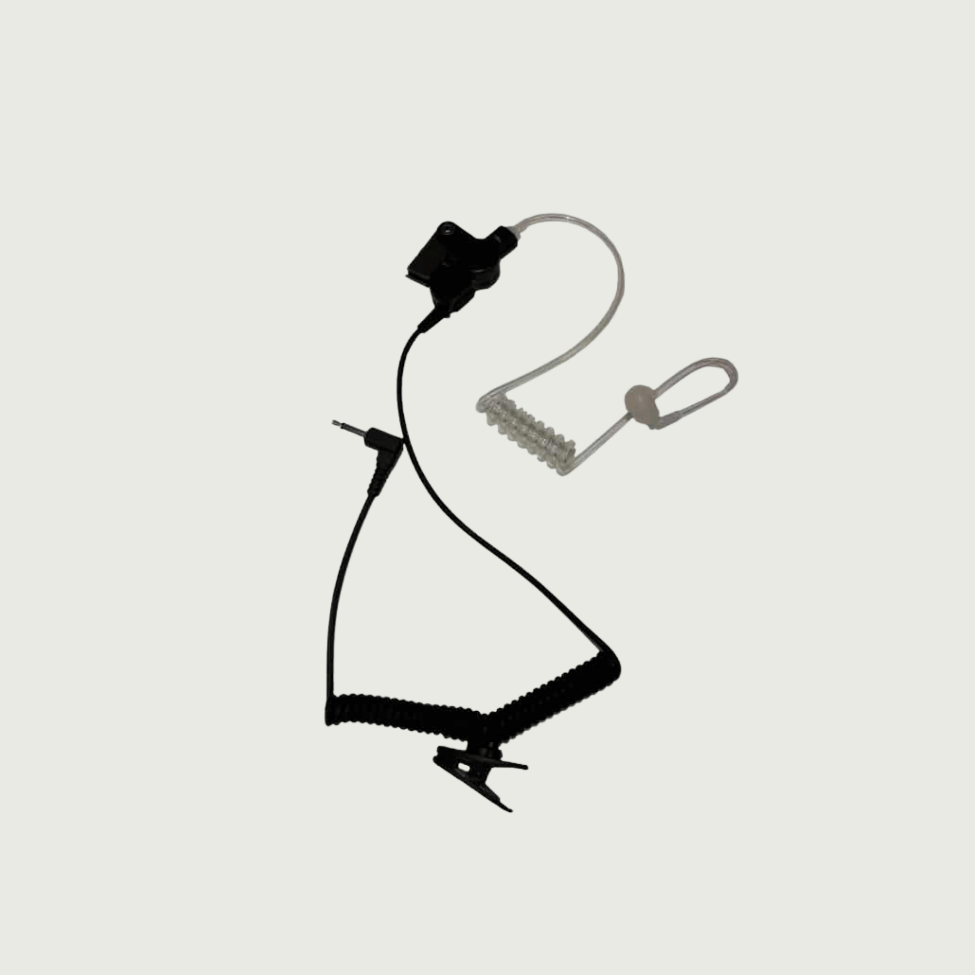 Øresnegl med spiral, clips og pinstik for håndmike. For digital radio.