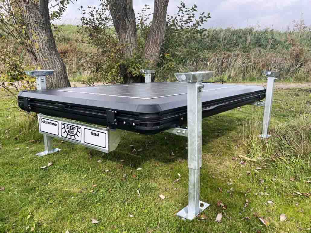 Sleepboxens batteripakke forsynes utelukkende av strøm fra solcellene på taket, solcellene er optimalisert for å kunne lades selv når solen ikke skinner.
