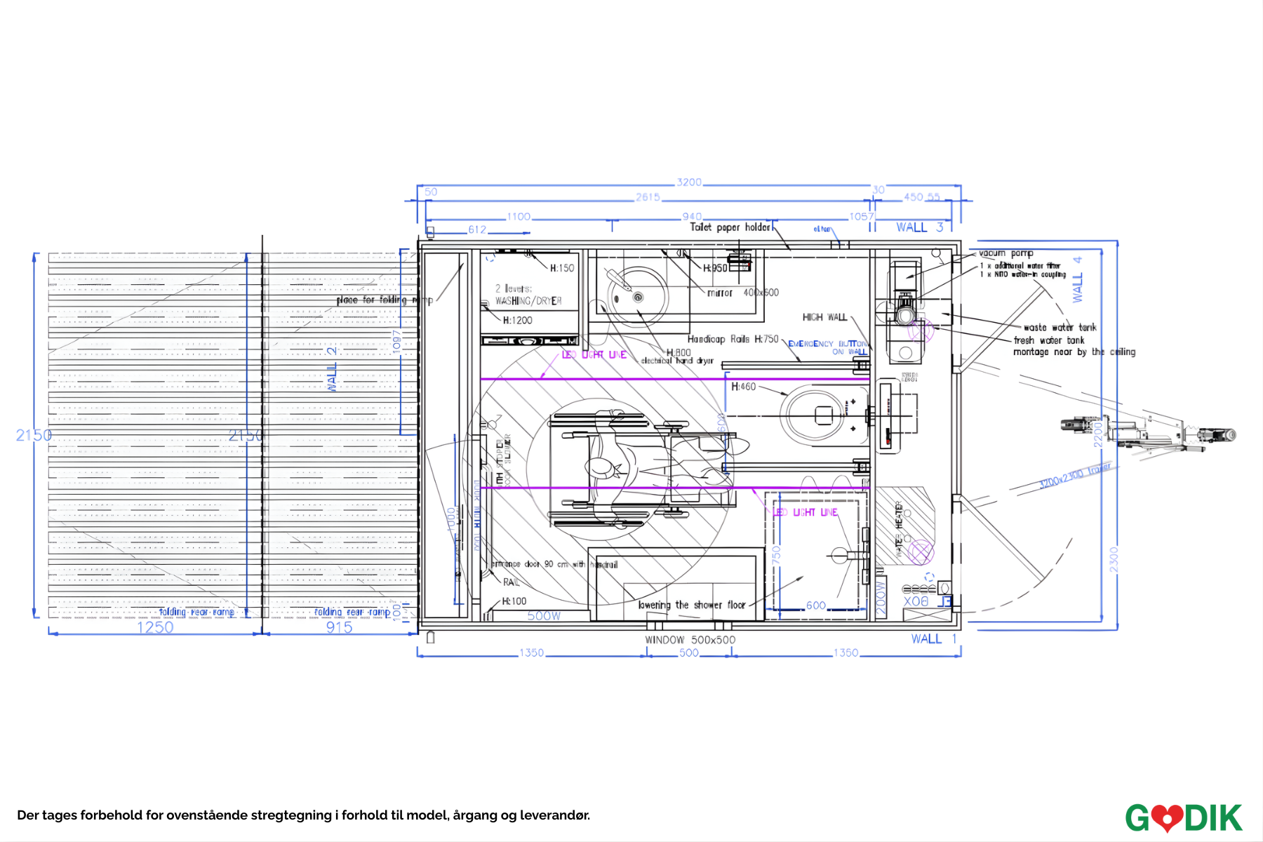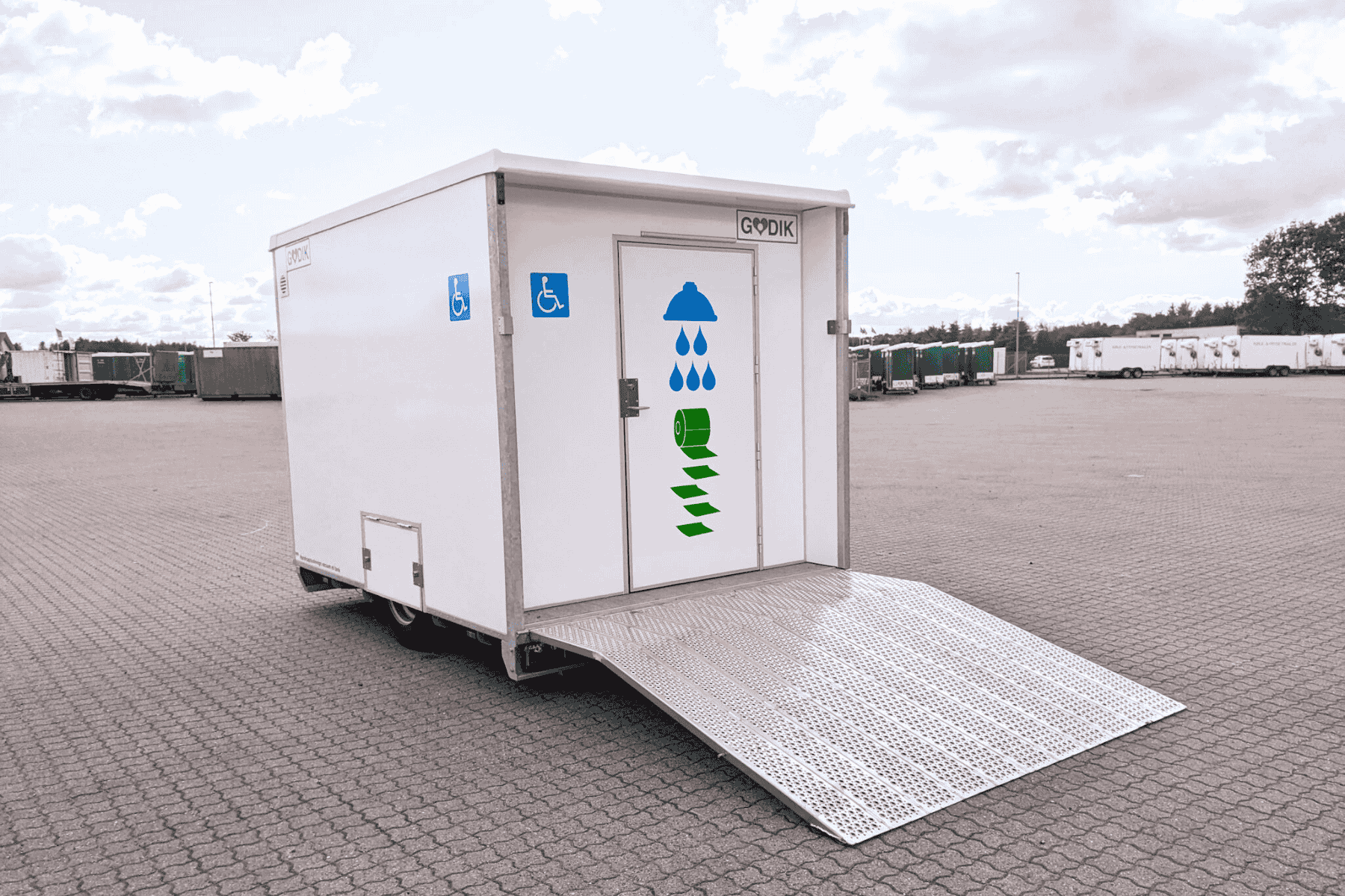 Toalettvogn for funksjonshemmede, inkl dusj, vaskemaskin/tørketrommel og tank