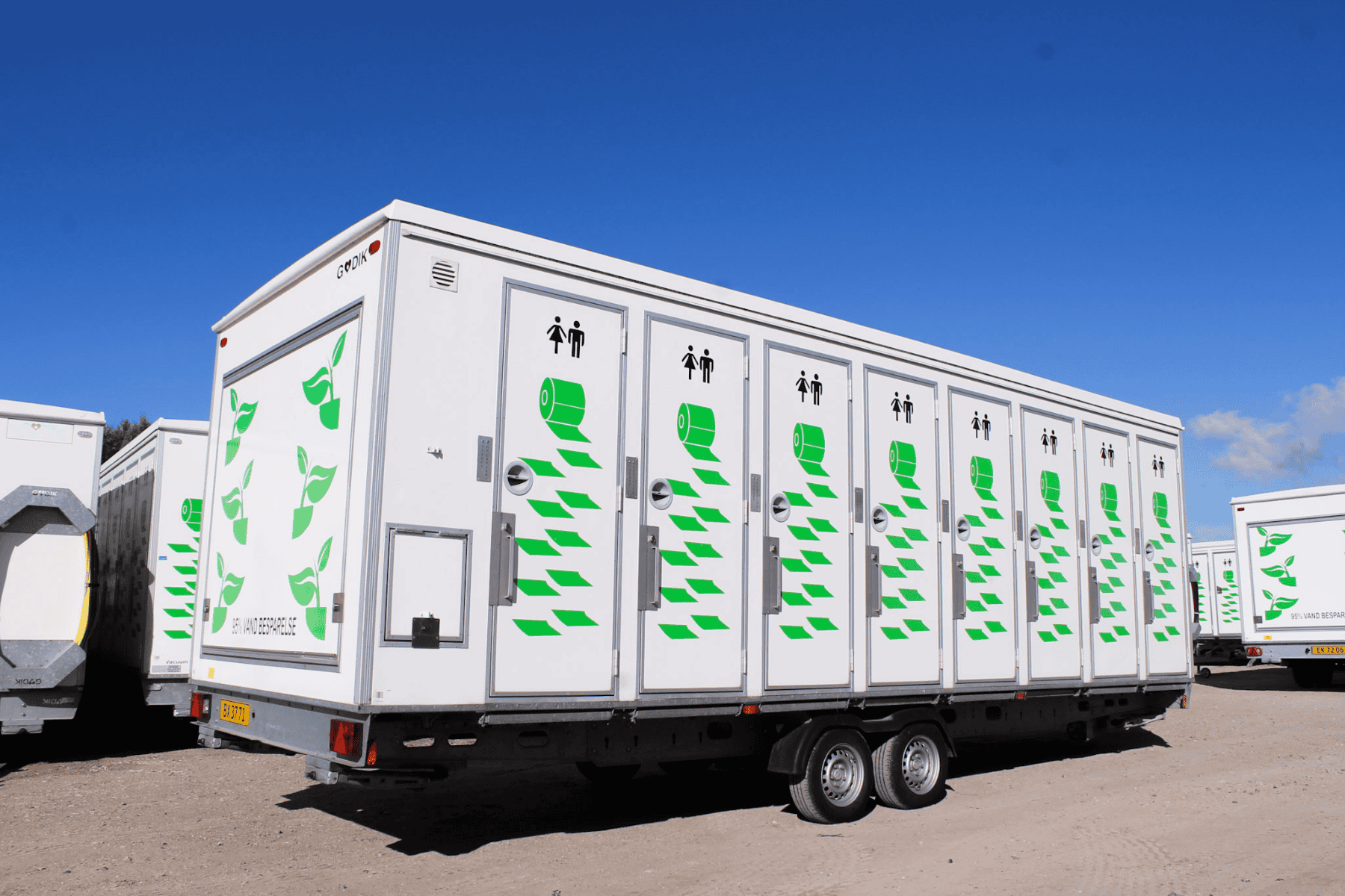 Toalettvogn for tilkobling av 16 vakuumtoaletter og to vasker – den optimale løsningen for store arrangementer og festivaler. Leveres klar til bruk med et effektivt vakuumsystem og enkel rengjøring.