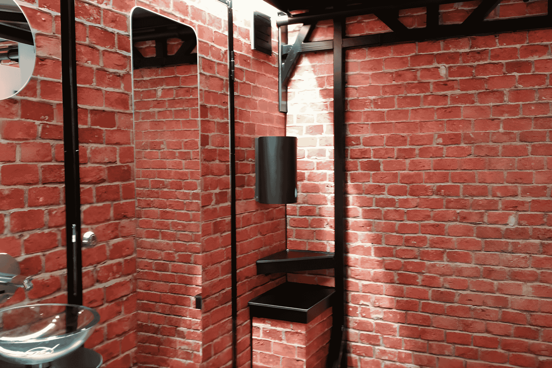 3 dametoiletter, 3 herretoiletter, LED lys udv. og indv., radiator, spejl, knage, toiletpapirholder, madameposeholder, skydedøre, håndtørre, højtaler til musik.